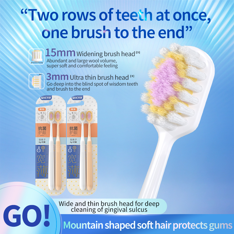 2-Pack Wide and Thin Shaped Soft Bristle Toothbrushes